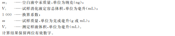 10.4.3汞標準使用液(50ng/mL):吸取0.50mL汞標準中間液(10g/mL)于100mL容量瓶中,用重鉻酸鉀的硝酸溶液(0.5g/L)稀釋和定容。此溶液濃度為50ng/mL,現用現配。