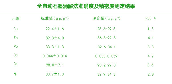 全自動石墨消解法準確度及精密度測定結(jié)果