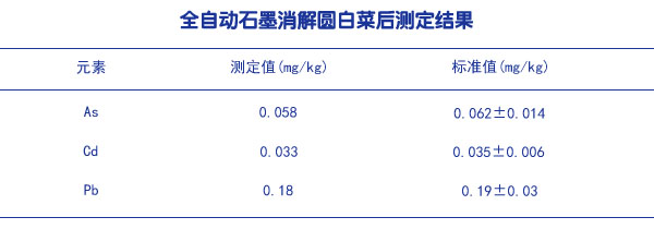 全自動石墨消解圓白菜后測定結果