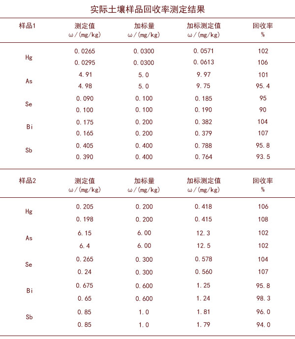 實際土壤樣品消解測定回收率結(jié)果