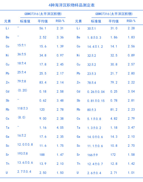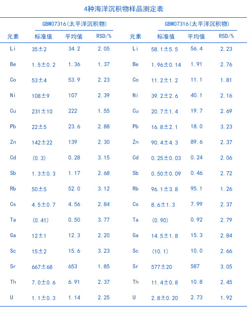 試劑:硝酸、氫氟酸、高氯酸、硫酸、鹽酸均為分析純;GBW07316(太平洋海盆沉積物)、GBW07334(南海沉積物)、GBW07335(東海沉積物)、GBW07309(水系沉積物)。