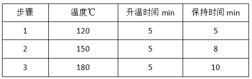 將經過烘干并研磨成粉末狀的玉米樣品0.35克準確稱取至微波消解罐中,加入8毫升 硝酸和2毫升 高氯酸溶液,封蓋后放入微波消解儀內,同時進行兩份空白對照。按以下程序進行密閉消解。消解完成后,將消解罐冷卻至室溫,取出后將消化液轉移到25毫升容量瓶中,用超純水稀釋至刻度,備用。
